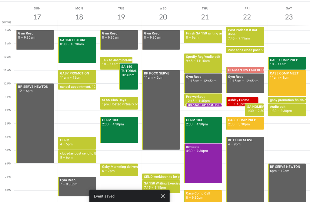I have inserted (one of many) of my weekly schedules from early 2021 to visually represent the chaos that was my life.